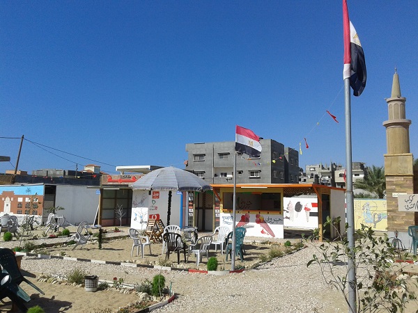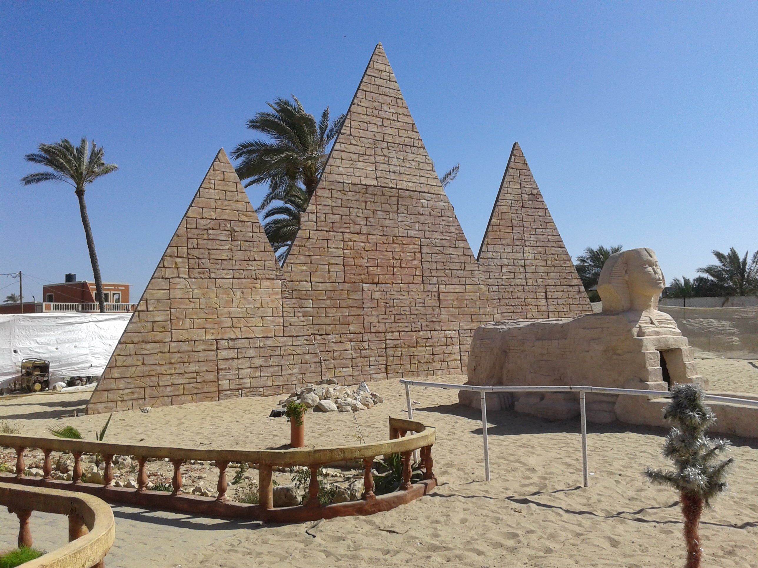 "هنا القاهرة"، ما إن تدخل عبر معبر رفح البري ببوابته السوداء والعمل المصري الذي يعلوه إلى المكان الواقع في منطقة رملية بأهراماتها وأبو الهول ومتحفها، وقهوة أم كلثوم وماسبيرو "مبنى الإذاعة والتلفزيون"، وجامع الحسين، ودار الأوبرا، وبرج القاهرة، كلها معالم يحتضنها مكان واحد على الرغم من تباعدها على أرض الواقع.