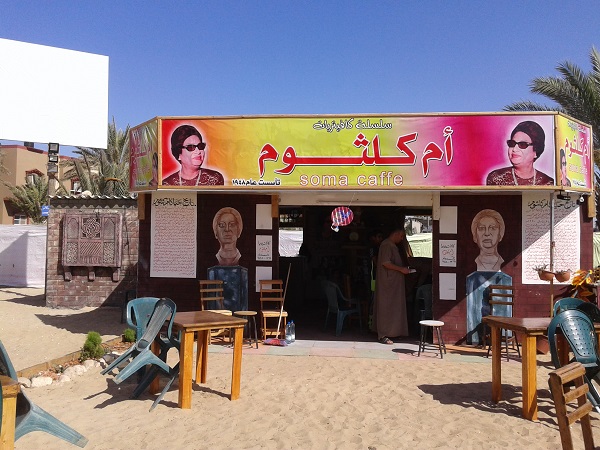 أما الشاب أحمد عدوان والذي جلس برفقة مجموعة من أصدقائه في قهوة أم كلثوم، وعلى صوت أغانيها الشهيرة شربوا القهوة في هذا الذي يحوي كل هذه الفخامة رغم بساطته، فإلى جوار قهوة ام كلثوم يتربّع جامع الحسين، وعلى الرغم من المسافة الهائلة التي تفصل هذين المكانين في العاصمة المصرية إلا أن مدينة القاهرة في رفح جعلتهما قريبين ليشعر الزائر أنه وسط هذه المعالم في آن معًا.