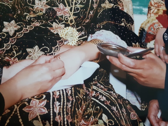 وفي حضور حفلة ليلة الحنّاء الخاصّة بالعروس ميادة عايد من مخيم قلنديا (25 عاماً)، والتي كانت تبدو في قمة سعادتها في حين انشغلت الحاجة فاطمة في رسم أشكال مختلفة على يديها، منها الورود والفراشات وفروع الأشجار، وما إن انتهت حتّى سارعت باقي الفتيات إلى النقش على أيديهن، وبدأن بالغناء.