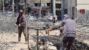 وينشط إلى جانب "أبو جزر" شبان آخرون، ليس من أجل الحصول على الكتل الخرسانية؛ إنما لإخراج القضبان الحديدية منها، وإعادة فردها وتعديلها، ثم بيعها لإعادة استخدامها في أعمال البناء، بسبب نقص الحديد وارتفاع أسعاره في أسواق القطاع.