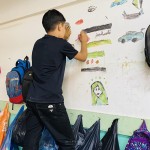 على جدار الفصل الدراسي رسم مصعب رموزًا وطنيةً وعلم فلسطين، وكأنه يقهر بموهبته الاحتلال، ويقول بألوان العلم الأربعة وليس بلسانه، ما قاله الشاعر الراحل محمود درويش: "على هذه الأرض ما يستحق الحياة.