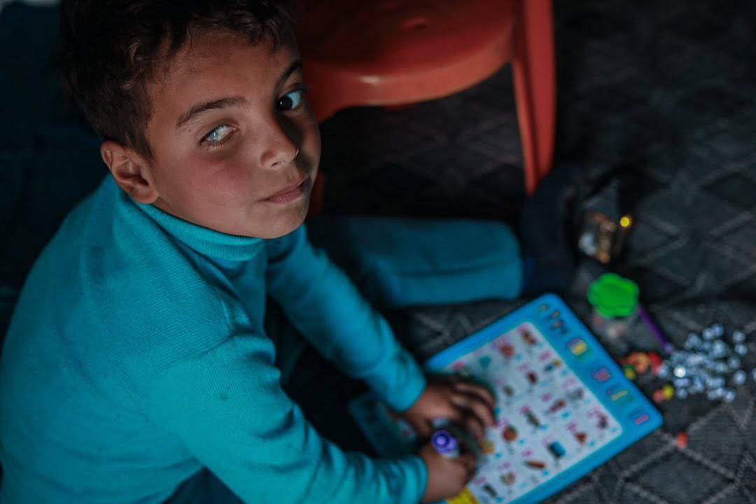 وسط امتداد مآسي الإبادة، وقعت عين الكاميرا على طفلٍ بدا أنه فقد عينًا من عينيه في القصف الإسرائيلي على قطاع غزة. كان يركض حول أمه، يشدّ ثيابها ويرفض أن يتركها، يسير بجانبها، وإن ما قررت الدخول إلى الخيمة يلازمها. "الأفضل بالنسبة له الدخول إلى الخيمة، خوفًا من أن يرصده الصاروخ مجددًا" تقول أمه.