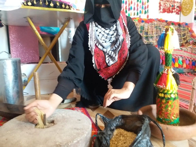 تبدو عائشة فخورةً بما وصلت إليه اليوم بعد 12 سنة من محاولات استحضار حياة البادية وفق قدراتها، "التي كثيرًا ما كانت تبوء بالفشل"، لقد حاولت إعادة إحياء كل ما يتعلق بتراث البدو القديم، من خلال منتجاتٍ تصنعها بيديها، وتزين أركان الغرفة التي تتخذها معرضًا لتسويقها.