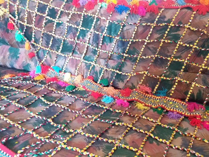 تحتفظ الشابة الثلاثينية بمغزلٍ بدائي، وتحاول من الحين للآخر الحصول على بعض شعر الغنم، أو وبر الجمال من بعض المعارف، لتعزز شغفها بصناعة منتجات البادية، ونظرًا لعدم توفره دائمًا، تعتمد عائشة على الصوف الصناعي في عملية المد، وهو المرحلة التي يتم فيها تشكيل النول "بتثبيت أربع أوتاد على شكل مستطيل في الأرض، واثنتان بشكل مخالف من الأمام والخلف، ثم تبدأ بمد الصوف بينها، وتشكيل الغرز لصناعة قطعٍ تسمى (رواق) يستخدم في بناء بيت الشعر، وإنتاج بُسط تفرش داخل البيت".