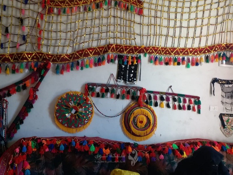 تحاول الشابة ربط التراث بالواقع الحالي من خلال إعادة تدوير المخلفات، فتحوّلها إلى تحفٍ فنية، وسيوف، وأشكال مختلفة من زينةٍ للأفراح والمناسبات، وشِباكٍ للسيارات، وسلالٍ ومضايف، وما يثير فخرها بنفسها أنها تتربع اليوم على عرش مُزينيي صالات الأفراح بكل متعلقات البيئة البدوية، في تغيير لطقوس الأعراس هذه الأيام.