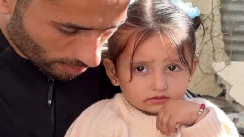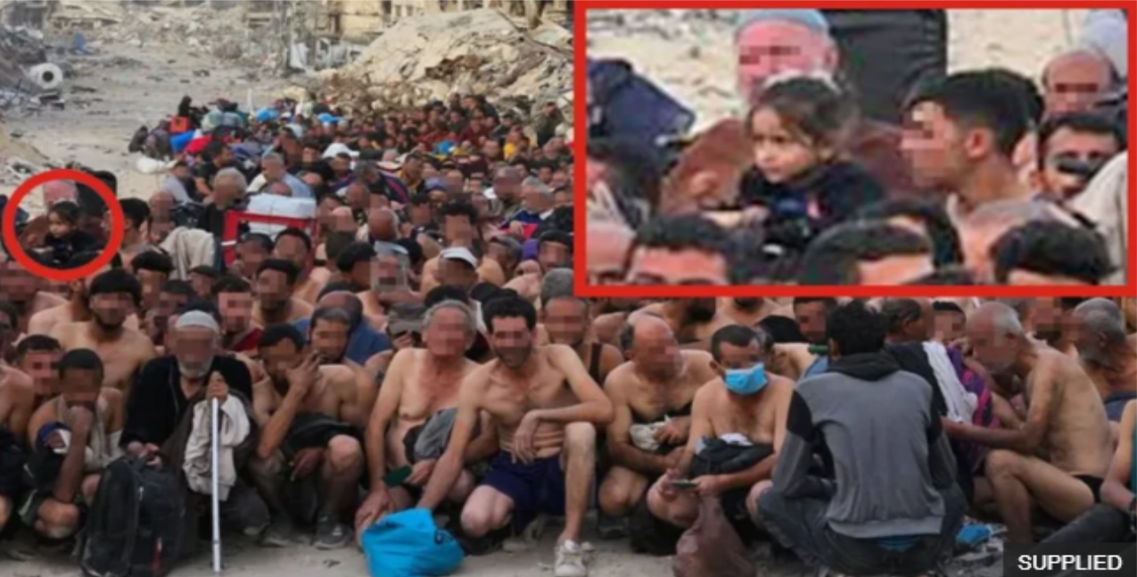 "طفلة وحيدة بين عشرات الرجال الذين جرّدهم الاحتلال من ملابسهم" هكذا ظهرت جوليا أبو ورد (4 سنوات)، خلال نزوحها مع أسرتها من مخيم جباليا شمالي قطاع غزة تحت القصف الجنوني.