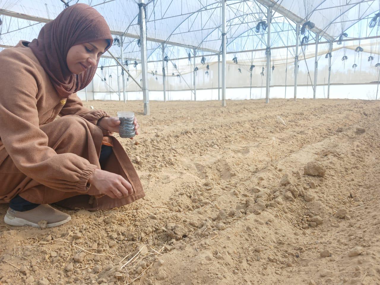 تكابد نادين وغيداء مشقة كبيرة لتجاوز الكثير من التحديات من أجل إحياء الأرض من جديد، في ظل أزمات مركبة ومعقدة، وشح في الأسمدة والأدوية والمبيدات.