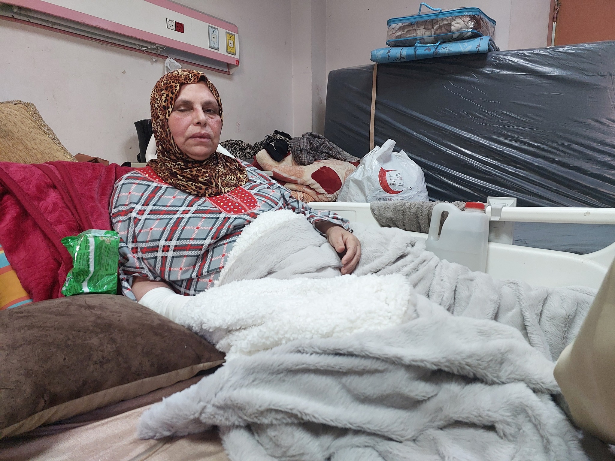 على سرير أبيض بين جدران إحدى غرف مستشفى شهداء الأقصى الباردة، وسط قطاع غزة، ترقد الجدة الستينية جواهر القيسي بصمتٍ مثقل بالألم، تغطيها بطانية خفيفة لا تقي وجع البتر.