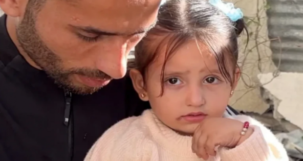 "طفلة وحيدة بين عشرات الرجال الذين جرّدهم الاحتلال من ملابسهم" هكذا ظهرت جوليا أبو ورد (4 سنوات)، خلال نزوحها مع أسرتها من مخيم جباليا شمالي قطاع غزة تحت القصف الجنوني.